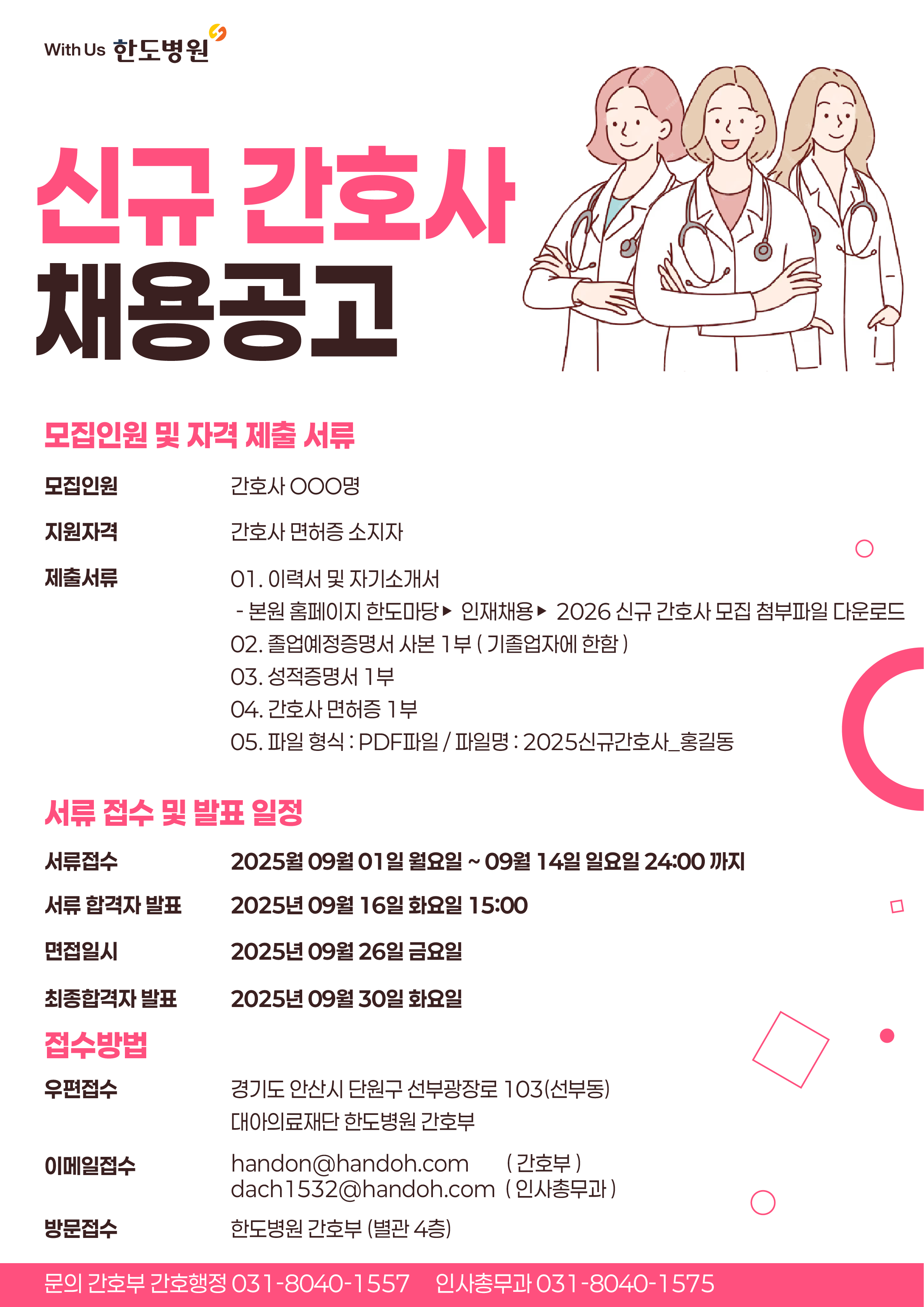 한도병원 간호부-2026년도 1차 신규간호사 모집공고